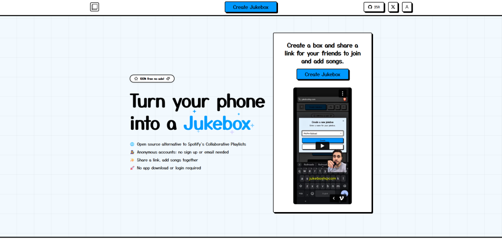 Musik verbindet – mit JukeboxHQ wird das Teilen von Lieblingssongs in Gruppen zu einem ganz neuen Erlebnis. Diese open source Plattform erlaubt es, dass jede Person über ein beliebiges Endgerät (Smartphone / Tablet / Laptop) Teil einer gemeinsamen Musik-Warteschlange wird.