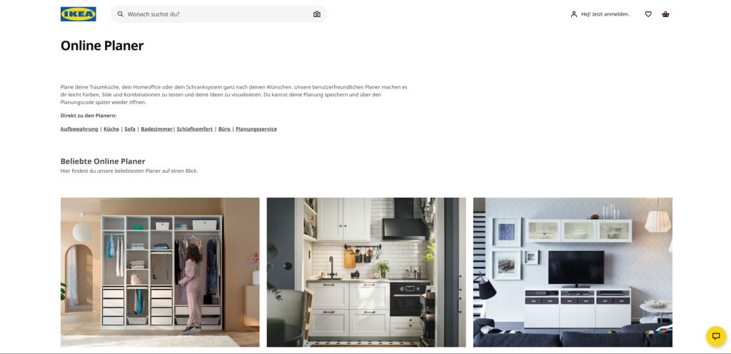 Neben dem Küchenplaner stellt IKEA auf seiner Online-Planer-Seite zahlreiche weitere digitale Planungshilfen bereit, für Schlafzimmer, Badezimmer, Kleiderschränke oder Büroeinrichtungen. Diese Tools folgen einem ähnlichen Prinzip und bieten die Möglichkeit, Räume virtuell zu gestalten, Möbel zu kombinieren und Gestaltungsvarianten zu vergleichen.
