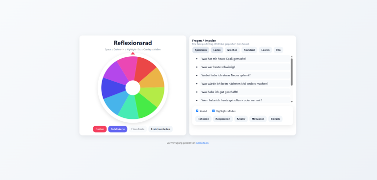 Glücksrad mit Reflexionsimpulsen.
