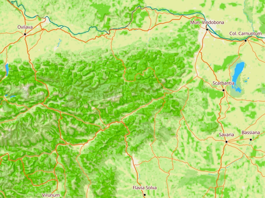 Nutzende können in die Karte hineinzoomen, einzelne Regionen betrachten und sehen, welche Orte durch welche Routen miteinander verbunden waren – auch im Gebiet des heutigen Österreichs.