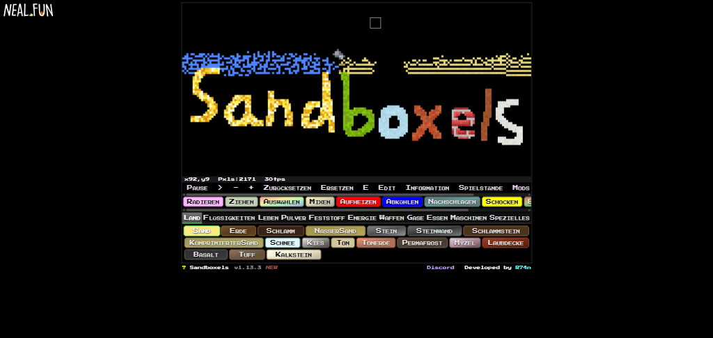 Sandboxels ist eine von Neal Agarwal bereitgestellte browserbasierte Simulation, die auf spielerische Weise physikalische und chemische Prozesse sichtbar macht. Nutzende können aus einer großen Auswahl an Elementen wie Sand, Wasser, Feuer, Metall, Gasen oder elektrischen Materialien wählen und diese auf einer digitalen Fläche platzieren.